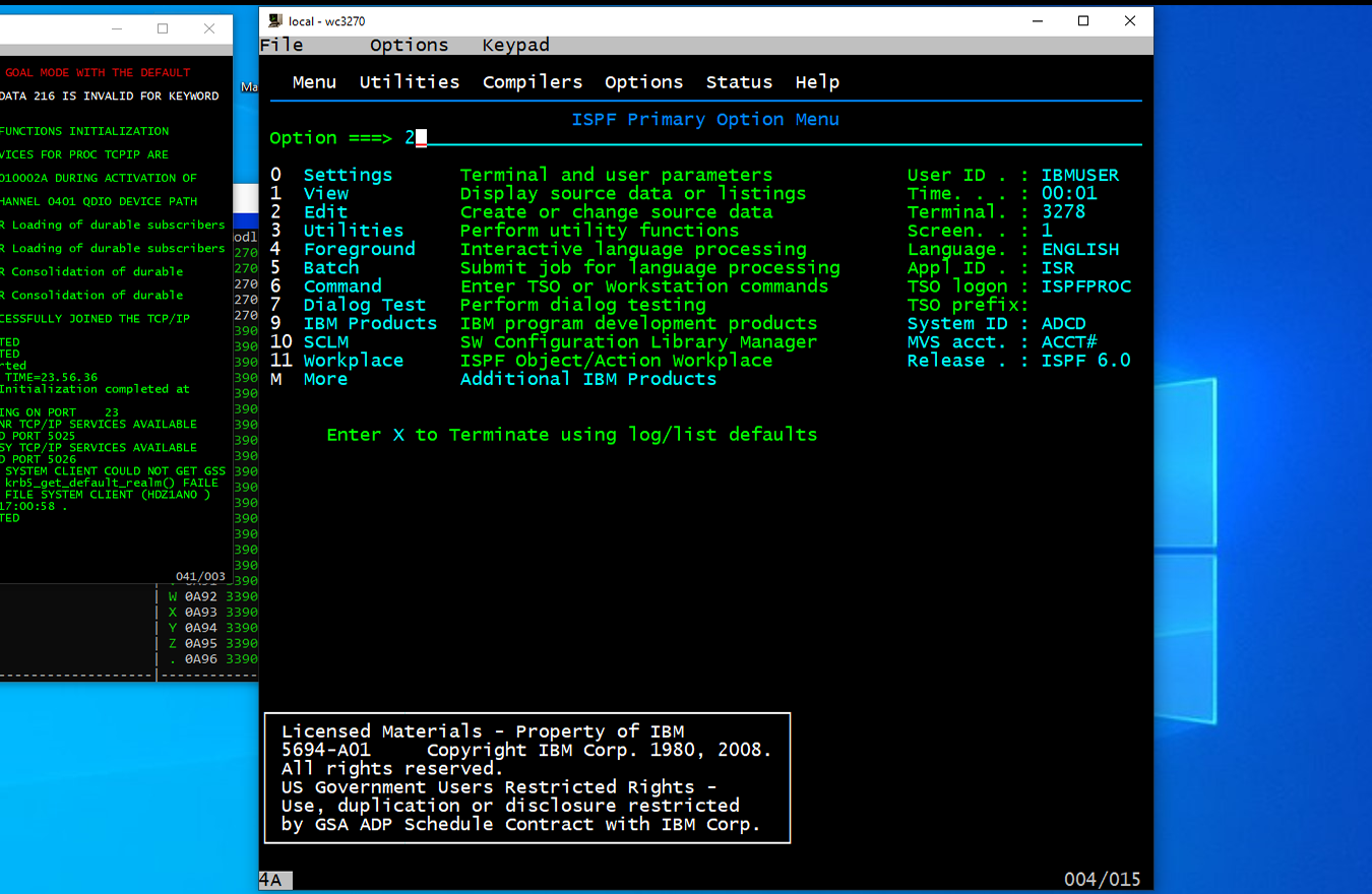 Nuevamente desde el menú principal del ispf, seleccionamos la opción '2 Edit' y ENTER.
