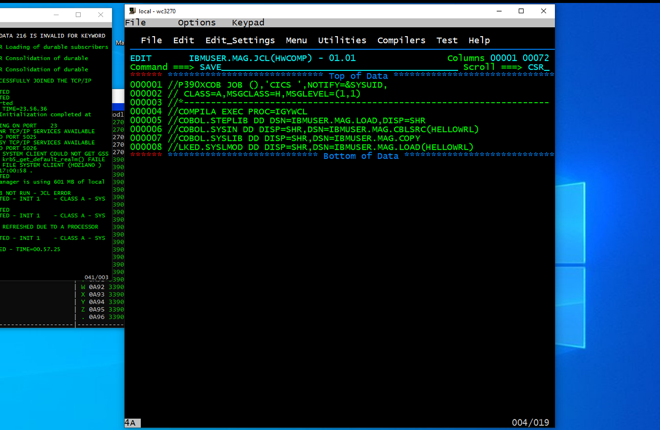 El siguiente paso es crear 'HWCOMP', el archivo en JCL que se encargará de compilar.
