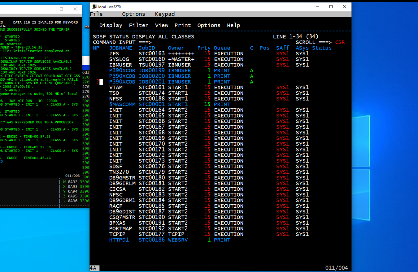 Visualizamos el JOB correspondiente a nuestro usuario (IBMUSER en este caso) y el numero 00200 que es el que nos indicó el 'SUB' del JCL.