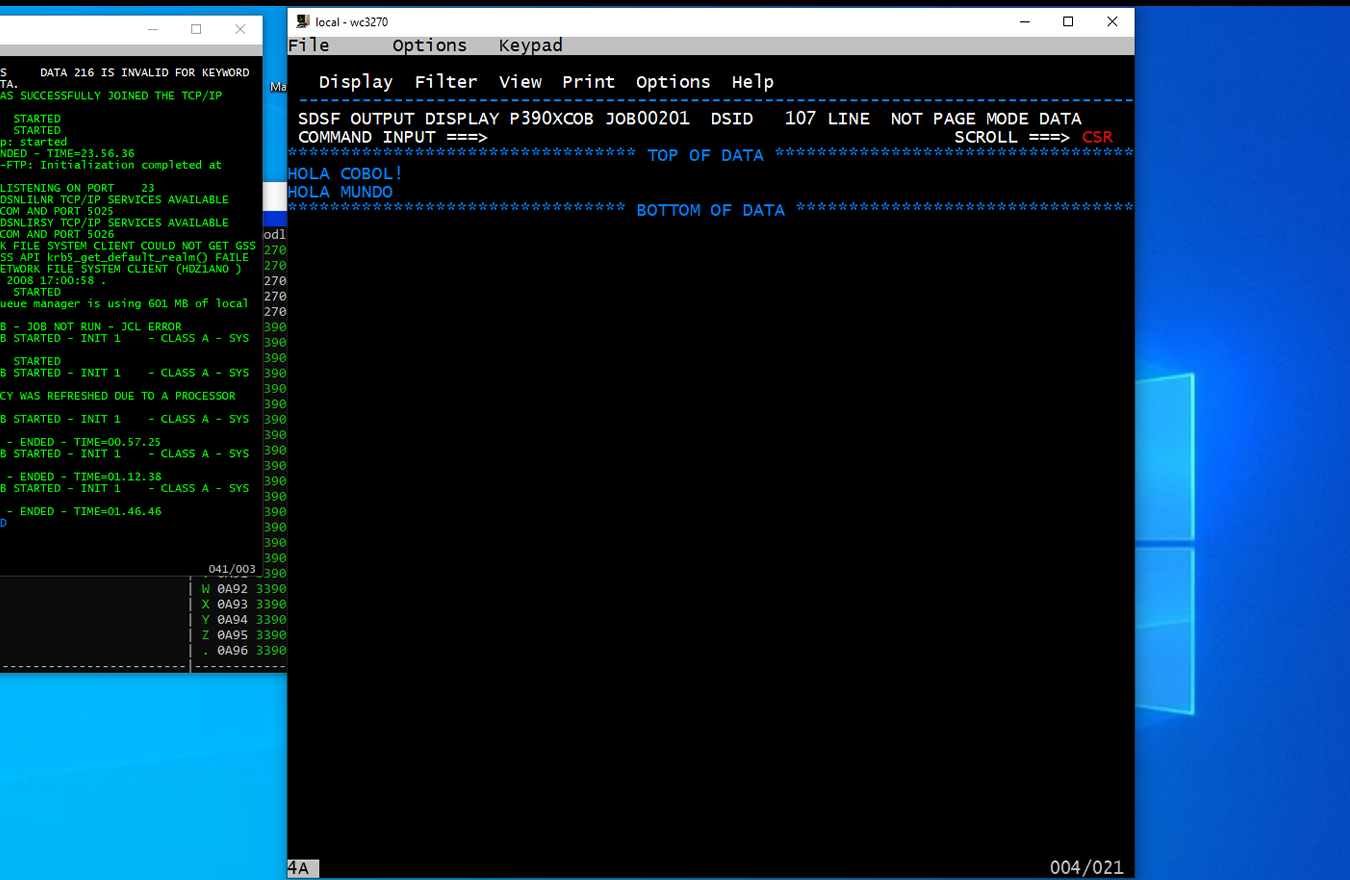 SDSF OUTPUT DISPLAY P390XCOB JOB00201 DSID 107 LINE NOT PAGE MODE DATA