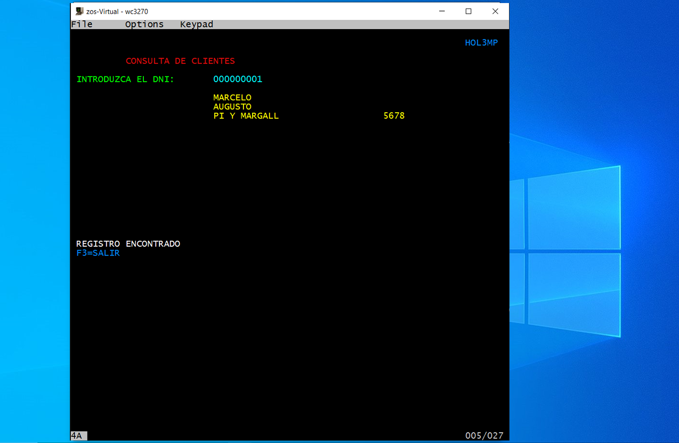 Como detalle, en este programa, se muestra el uso del reconocimiento de teclas especiales (PF3 en este caso).