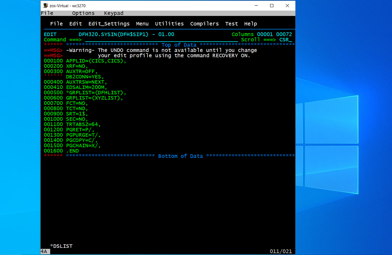 Ya que estamos, hagamos que la conexión con DB2 se ejecute AUTOMATICAMENTE. Esto lo hacemos con las listas de ejecucion de inicio de CICS.