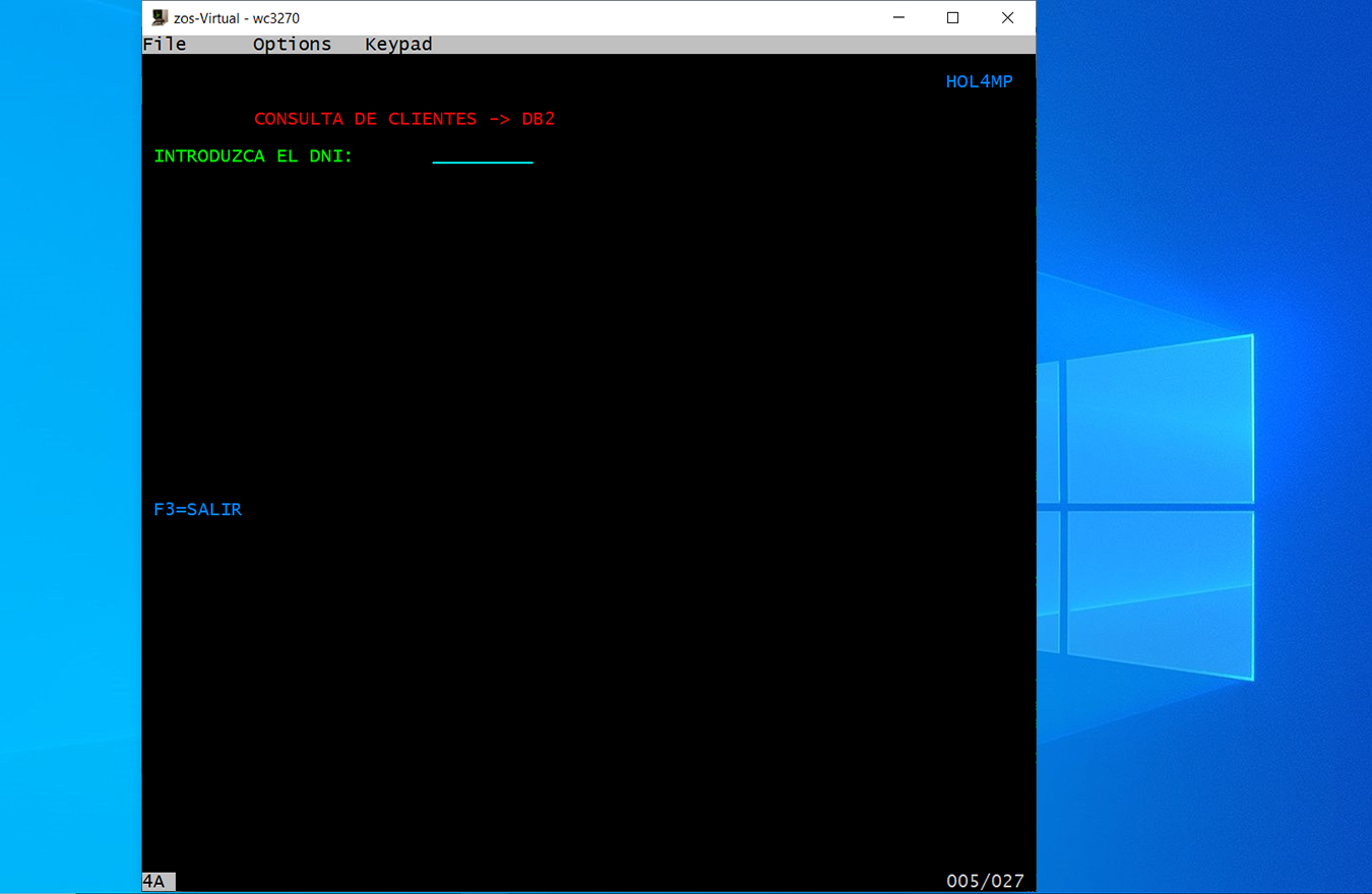 Antes de submitirlo, ejecutamos el comando 'C XXXXXX HOL4MP ALL' en modo view, para cambiar las XXXXXX por HOL4MP en el código, y finalmente el 'sub' y ENTER.