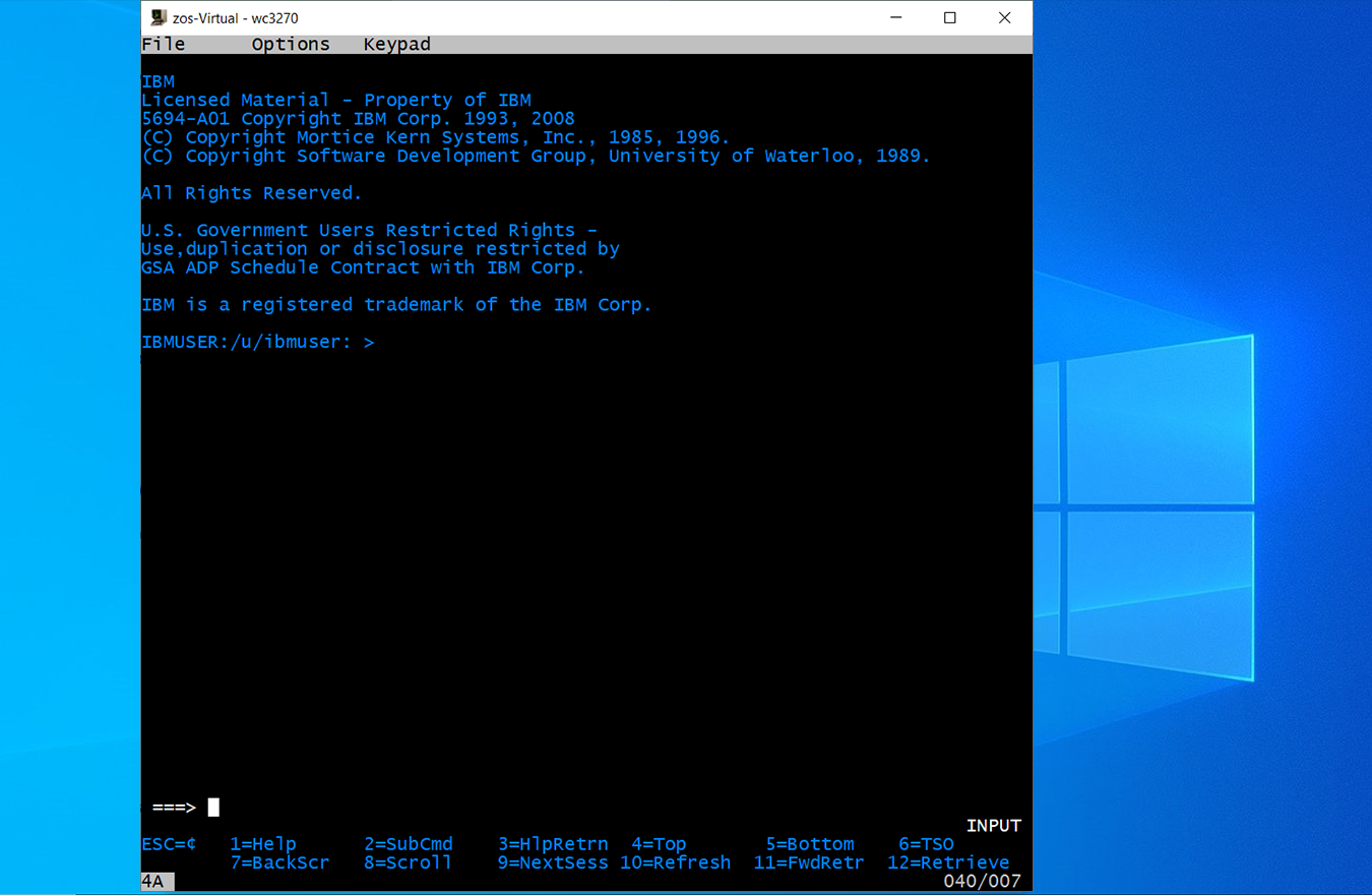 Desde el menú inicial de ispf, opción 'M More Additional IBM Products', y luego '10 OMVS MVS OpenEdition' para acceder a la consola de UNIX.