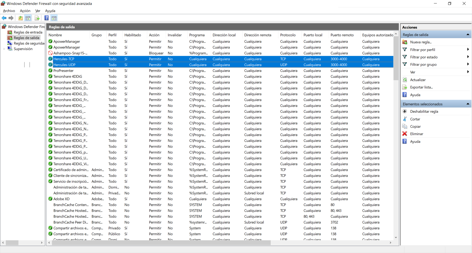 Creamos nueva regla de entrada y de salida para el puerto 3270.