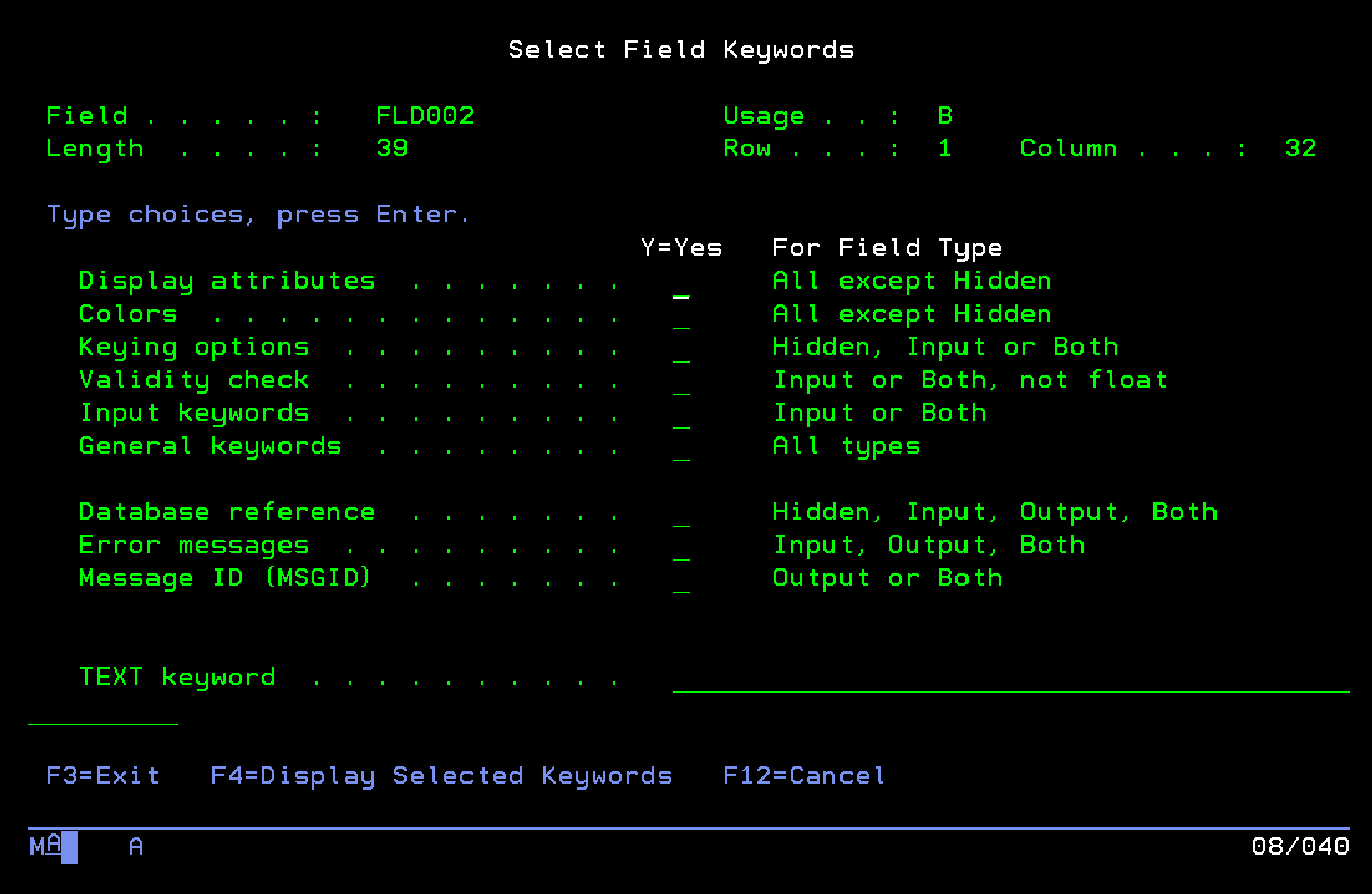 Con F14=File-level keywords vamos a seleccionar las palabras clave a nivel de archivo
