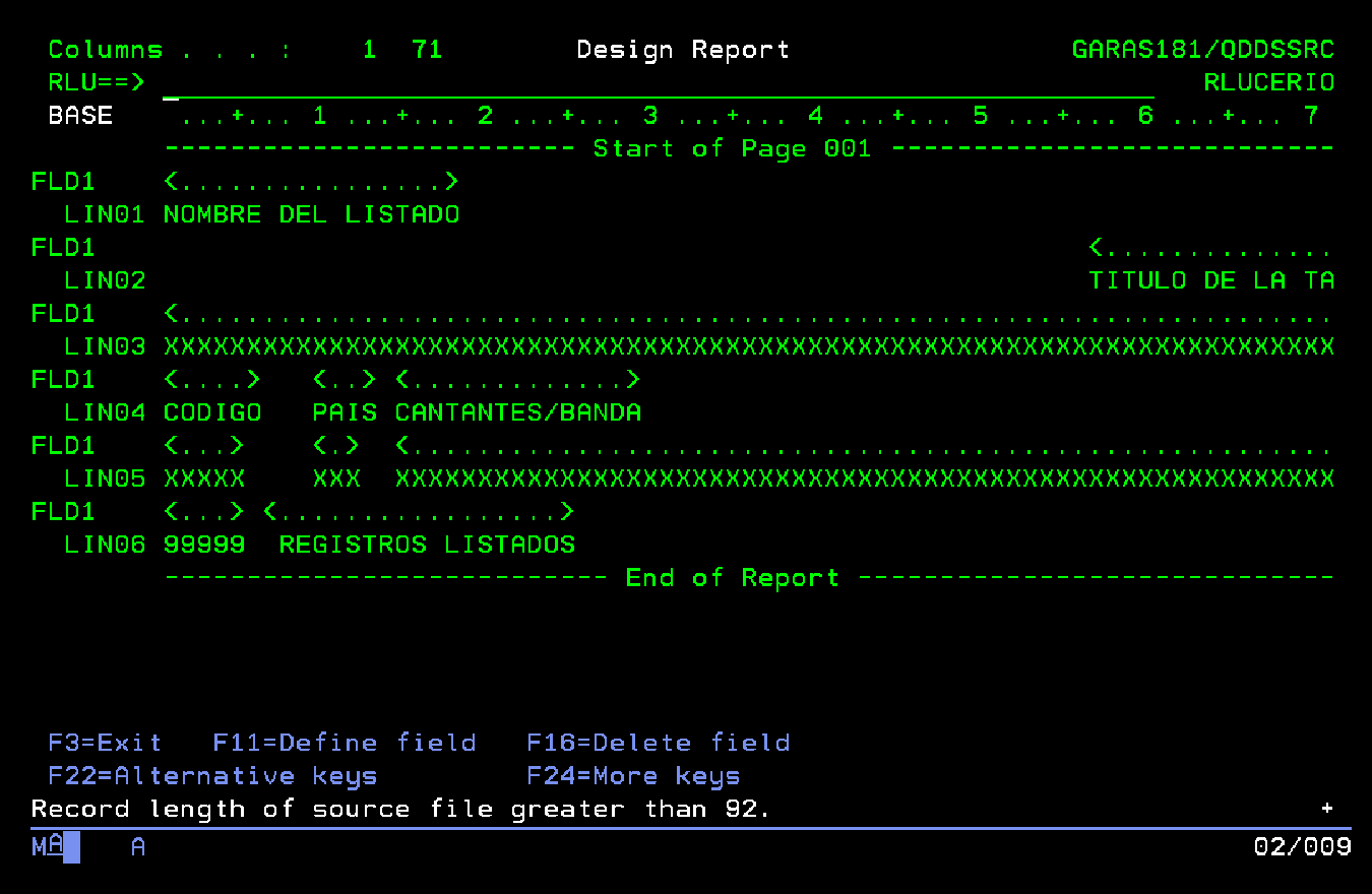 Tener en cuenta que al programar en RPG son muy importantes las ubicaciones de los comandos y datos en las